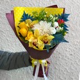 Мини-букет ирисов, хризантем и роз