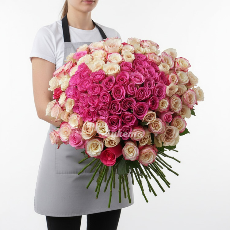 - Розовые и белые розы (Эквадор), 101 шт.