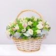 8 розовых хризантем в корзине