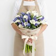 Букет из 25 ирисов и 10 эустом