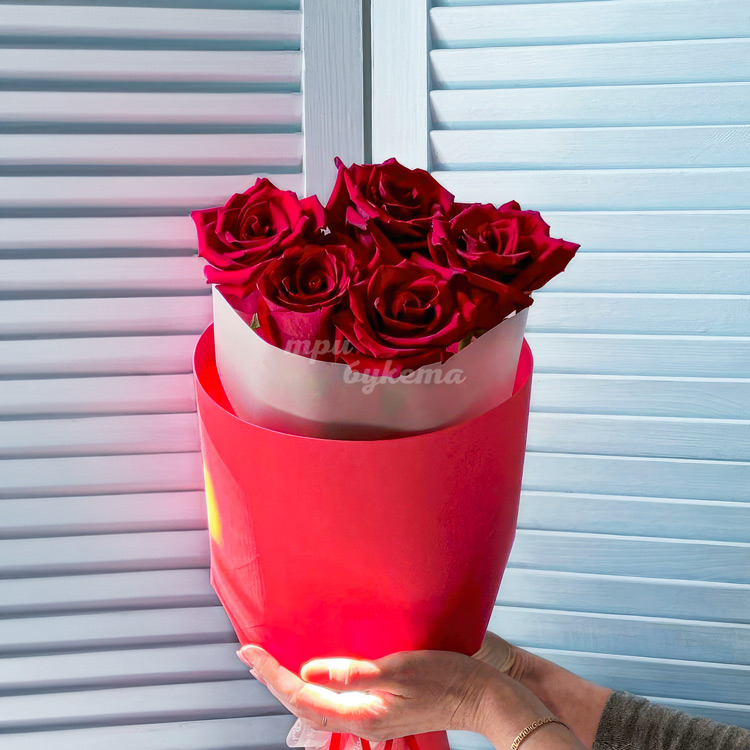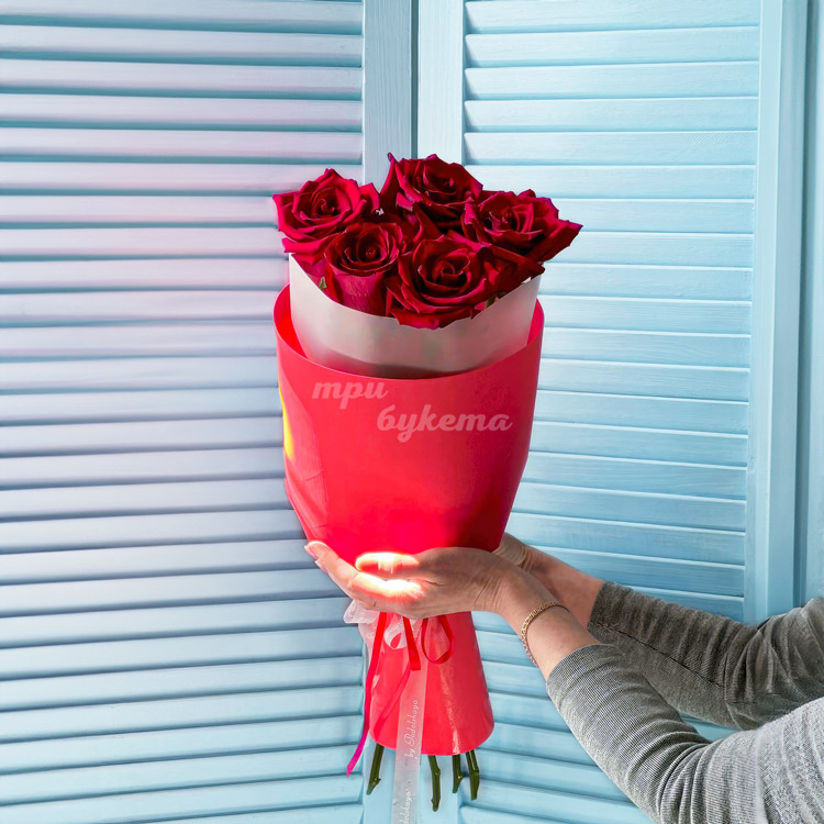 - Красные эквадорские розы, 5 шт.