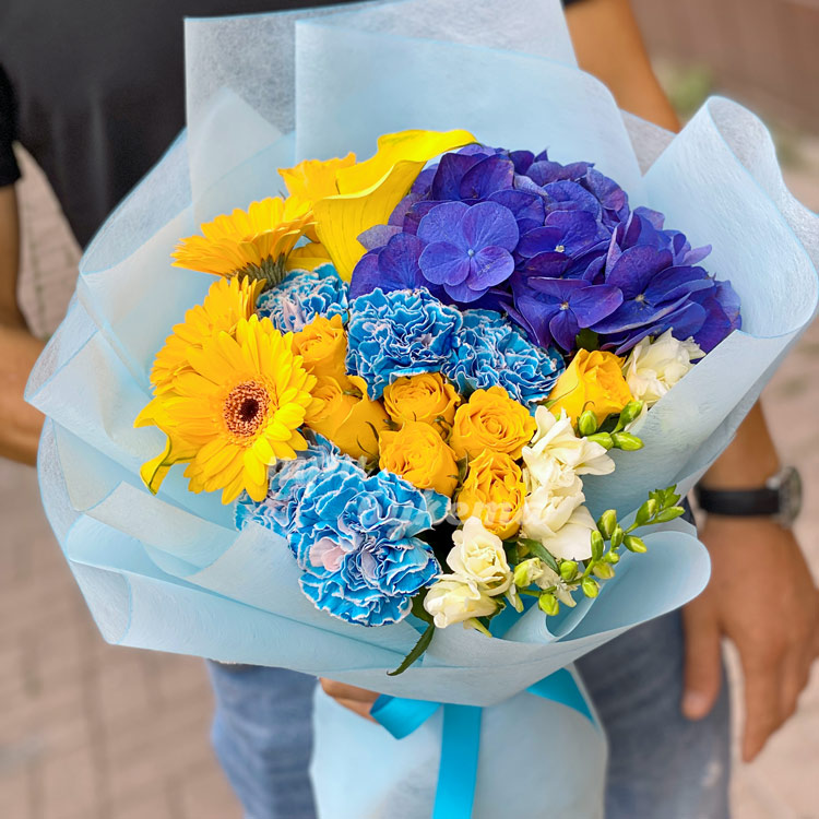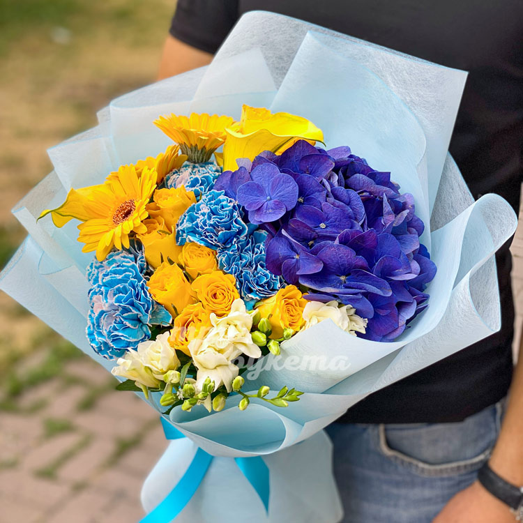 Букет из гортензии и гвоздик