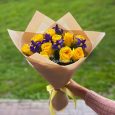 Букет из ирисов и подсолнуха
