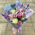 Букет из роз, орхидей и эустом