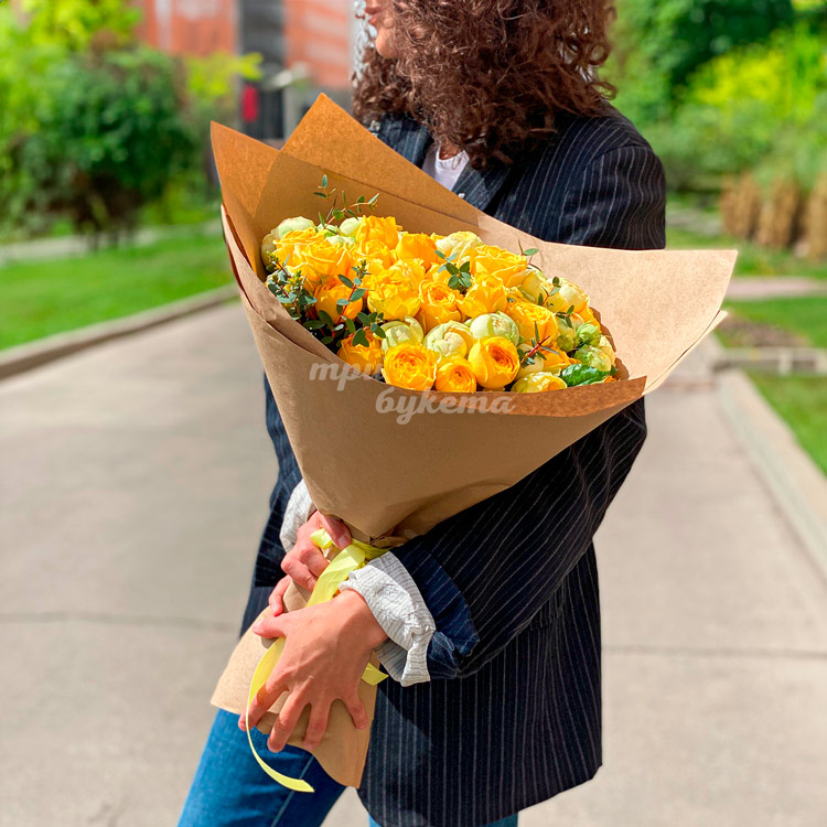 Букет желтых куст. пионовидных роз