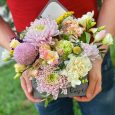 Эустомы и макаруны в коробке