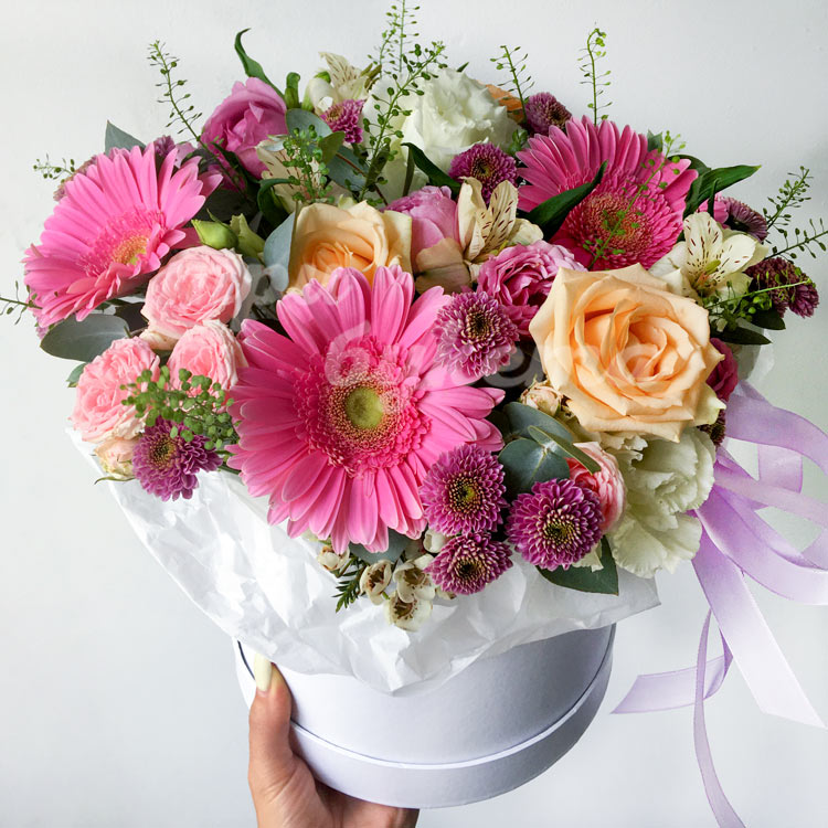 Герберы и хризантемы в коробке