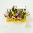 Коробка белых хризантем и гипсофил