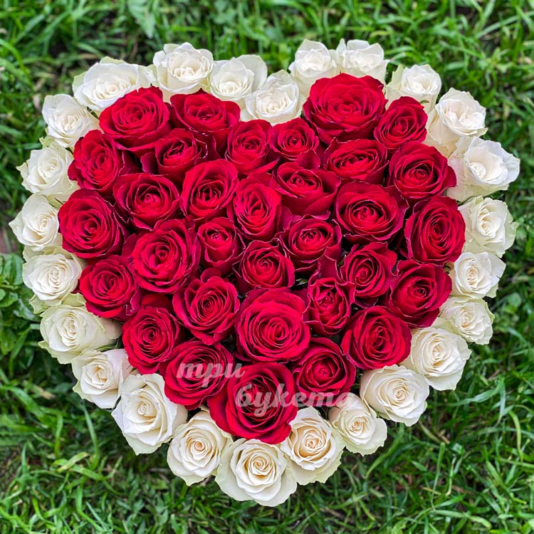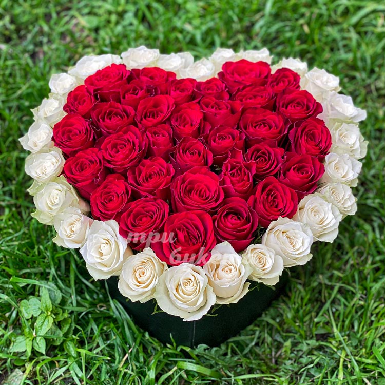 Коробка-сердце красных и белых роз