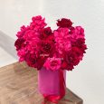 Коробка ярких французских роз и георгинов