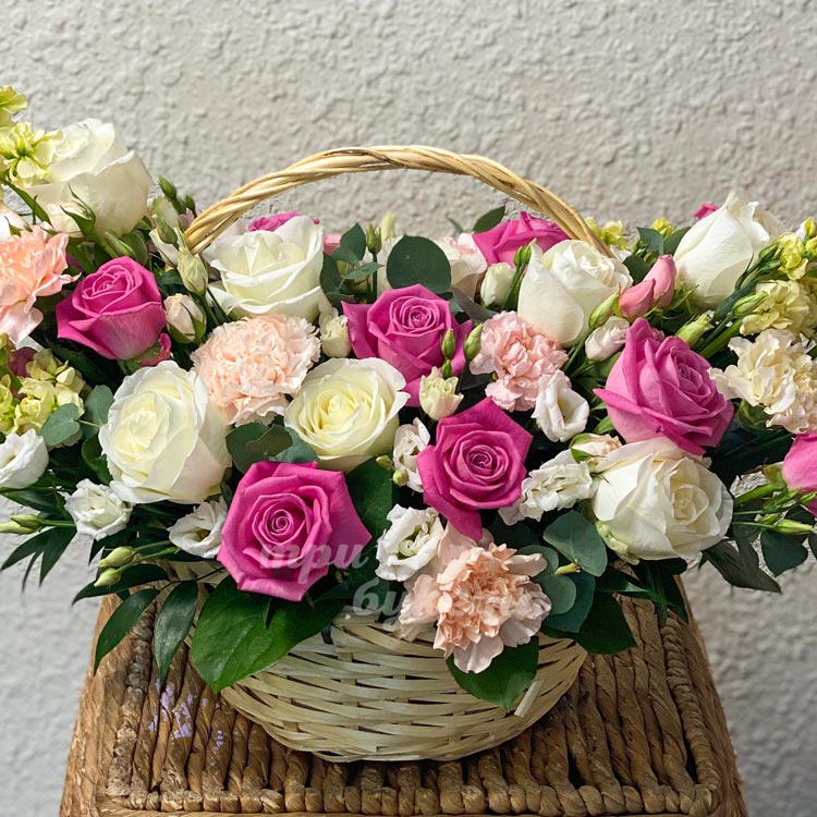 Корзина роз и эустом