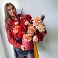 Шляпная коробка белых роз и гортензий