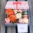 Тюльпаны, гвоздики и эустомы в коробке
